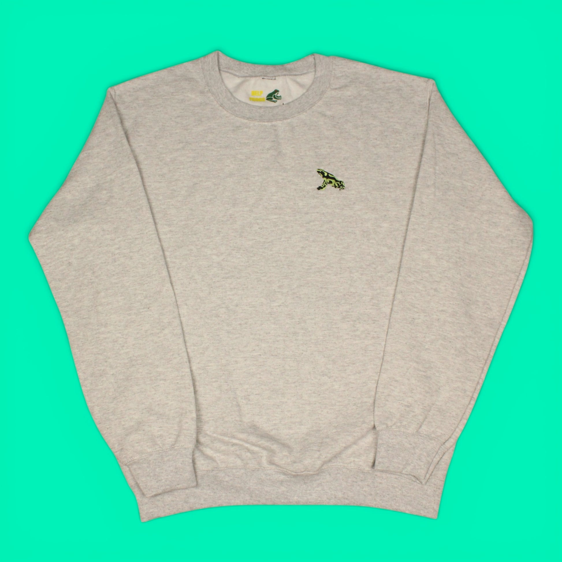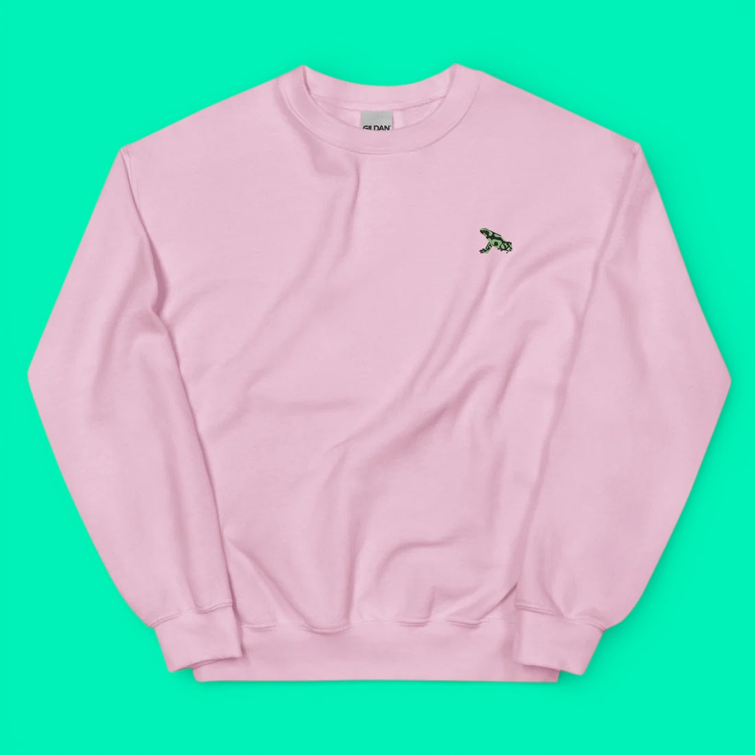 Green and Black Poison Dart Frog Embroidered Crewneck